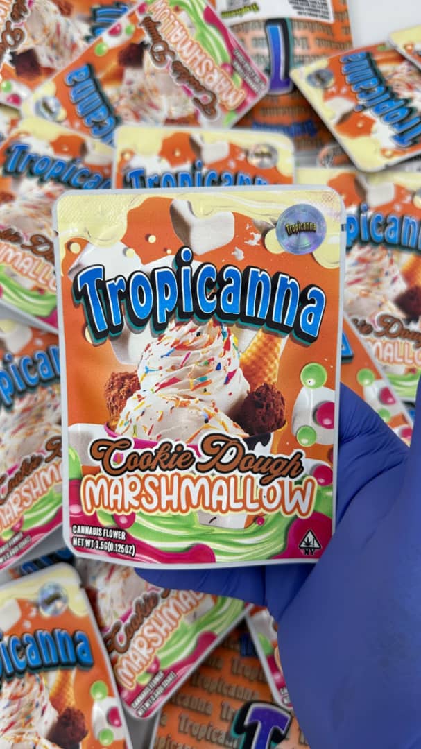 Tropicana Cookies, also known as “Tropicanna Cookies,” “Tropicana Cookies F2,” and “MTN Trop,” is a hybrid marijuana strain first bred by Harry Palms of Bloom Seed Co, who crossed GSC and Tangie. Oni Seed Co of Colorado made a second generation, “Tropicanna Cookies F2” that is also acclaimed. Expect citrus notes backed up by cookies flavor and power. This strain produces purple buds that have hints of dark green with orange hairs.